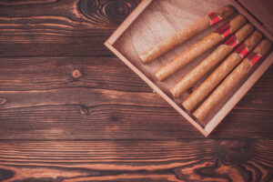 A well-curated cigar basket featuring a selection of quality cigars and accessories. A refined addition for those who appreciate a good cigar, whether enjoyed personally or shared in good company.